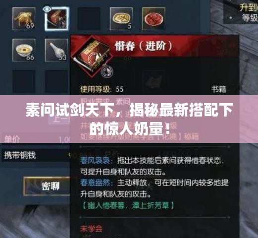 在风起云涌的江湖世界,武侠迷们对于“素问试剑天下”这一话题总是津津乐道,随着游戏版本的更新迭代,玩家们对于角色的技能搭配与奶量优化愈发关注,本文将围绕最新搭配下的奶量问题,展开一番探讨。