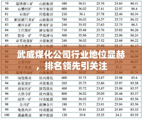 由于煤炭行业的特殊性,企业的排名往往会受到多种因素的影响,如产能、技术、市场占有率和盈利能力等,根据最新的行业报告,武威煤化公司在煤炭行业中具有较高的排名,尤其在煤化工领域表现突出,其排名不仅反映了公司在行业中的竞争力,也体现了其深厚的实力。
