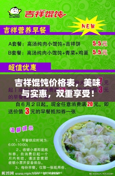 在繁忙的都市生活中,人们越来越注重方便快捷的餐饮体验,吉祥馄饨作为中国传统小吃之一,以其独特的口感和丰富的口味赢得了广大消费者的喜爱,本文将为您详细介绍吉祥馄饨的价格表,让您在品尝美味的同时,也能享受到实惠。