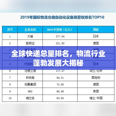 随着全球化的推进和电子商务的飞速发展,快递行业已成为现代生活不可或缺的一部分,每年的快递总量不仅反映了国家经济的繁荣程度,也揭示了消费者行为的变化,在这篇文章中,我们将探讨全球快递总量的世界排名,揭示物流行业的蓬勃发展。