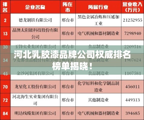 河北,这片富饶的土地,以其深厚的历史底蕴和不断发展的工业实力,孕育了一批优秀的乳胶漆品牌公司,随着建筑行业的蓬勃发展,乳胶漆作为内外墙装饰的重要材料,其市场需求日益增长,本文将为您介绍河北地区乳胶漆品牌公司的排名,以帮助您更好地了解这一领域的佼佼者。
