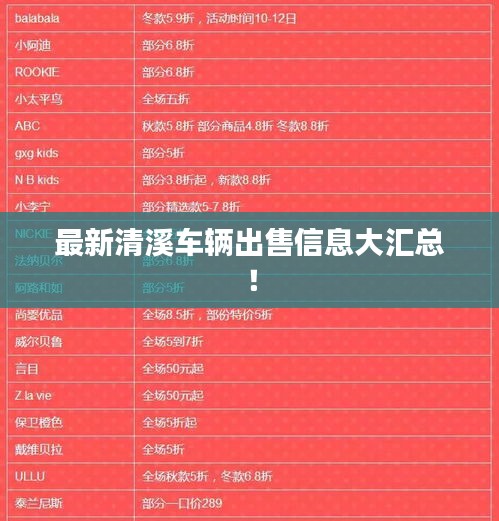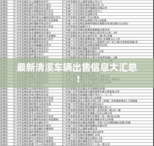 随着生活水平的提高,汽车已经成为人们出行的重要工具,对于有意购买新车或二手车的消费者来说,获取最新的出售信息至关重要,本文为您带来最新的清溪车子出售信息,让您轻松了解当地车辆市场动态。