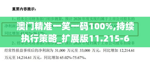 “澳门精准一笑一码100%,持续执行策略_扩展版11.215-6”是对原有策略的重要升级,这一版本可能涵盖了更广泛的游戏类型和更全面的市场分析,扩展版的特点可能包括更复杂的分析模型、更精准的预测算法以及更多元化的数据来源,这些改进旨在提高策略的成功率和稳定性,帮助参与者在竞争激烈的市场环境中保持优势。