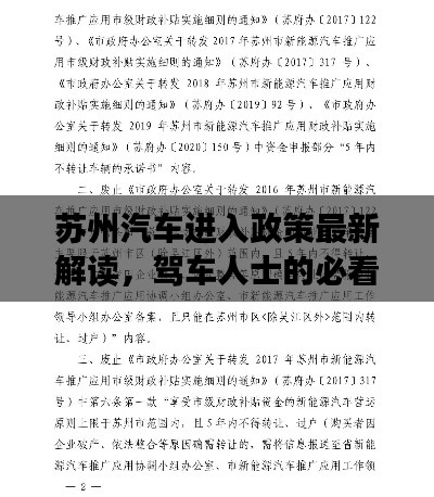 随着社会的快速发展,汽车产业在中国各地均呈现出蓬勃的发展态势,作为经济发达城市的苏州,其汽车保有量逐年攀升,为了更好地管理和引导汽车进入,苏州政府近期对汽车进入政策进行了新的规定和调整,本文将对汽车进入苏州的政策规定进行最新解读。