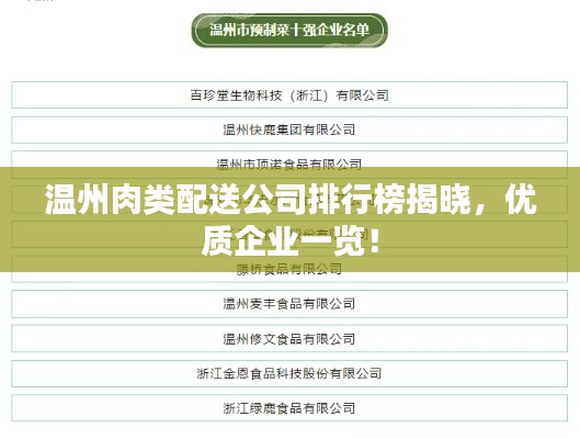 温州,以其繁荣的商贸业和丰富的食品产业著称,在这座充满活力的城市中,肉类配送行业也日渐兴盛,本文将为您介绍温州肉类配送公司的排名,以便您更好地了解这一领域的发展状况。