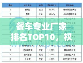 随着城市化进程的加快和人们对移动餐饮需求的不断增长,餐车行业逐渐崭露头角,本文将介绍餐车专业厂家排名前十名,以供参考。