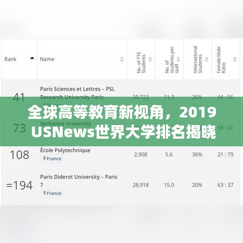 随着全球化的不断发展,高等教育也日益国际化,每年的世界大学排名都会引起广泛关注,尤其是对于想要出国留学的学生来说,排名是他们选择学校的重要参考依据之一,本文将围绕“2019 USNews世界大学排名”这一主题展开,探讨全球高等教育的新视角。