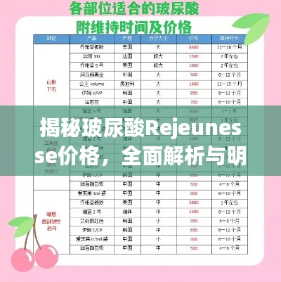 随着人们对美的追求不断提高,美容行业迅速发展,玻尿酸作为一种常见的美容产品,受到了广泛关注,Rejeunesse玻尿酸是其中一种备受关注的产品,本文将介绍Rejeunesse玻尿酸的价格、作用及选择等相关内容,帮助读者更好地了解和使用这一产品。