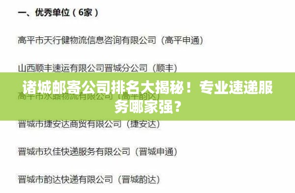 随着电子商务的快速发展,邮寄行业在诸城市也得到了迅猛的发展,越来越多的邮寄公司进入诸城市场,为消费者提供了多元化的服务,本文将根据服务质量、速度、口碑等因素对诸城的邮寄公司进行排名。
