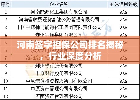 随着经济的发展和金融市场的繁荣,河南的签字担保公司在提供金融服务方面发挥着越来越重要的作用,本文将探讨河南签字担保公司的排名及相关行业分析。