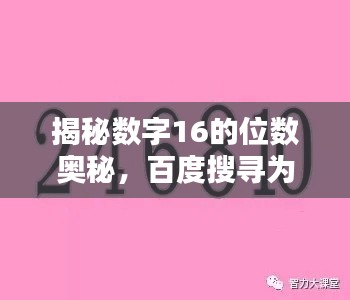 在日常的网络冲浪过程中,我们有时会遇到一些看似简单却又让人产生疑惑的问题,数字“16”是几位数呢?这个问题看似简单,但对于那些一时之间无法快速回答的人来说,百度搜寻或许是一个快速获取答案的途径,本文将围绕这一问题展开,带你一起通过百度搜索探寻答案。