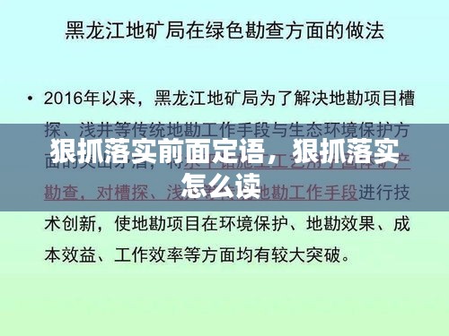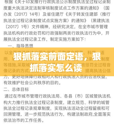 狠抓落实,并非简单的口号,而是需要具体行动和实际效果的体现。在这里,我们可以从三个方面来理解狠抓落实的前面定语:精准、高效、务实。