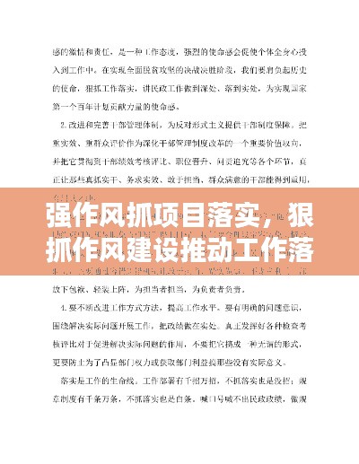 作风建设与项目落实是相辅相成的。只有强化作风,才能确保项目落实;而项目落实的成功,又能进一步推动作风建设。在新时代,我们要紧紧围绕“强作风抓项目落实”这一主题,以更加务实的作风、更加有力的措施,推动项目落实取得实效,为全面建设社会主义现代化国家贡献力量。