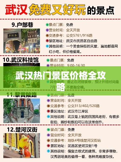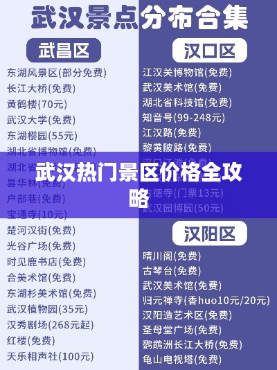 武汉,这座繁华的江城,不仅是湖北省的省会城市,更是一个历史悠久、文化底蕴深厚的城市,众多的旅游景点吸引了无数游客前来探访,本文将为您详细介绍武汉各大景区的价格,帮助您规划行程和预算。