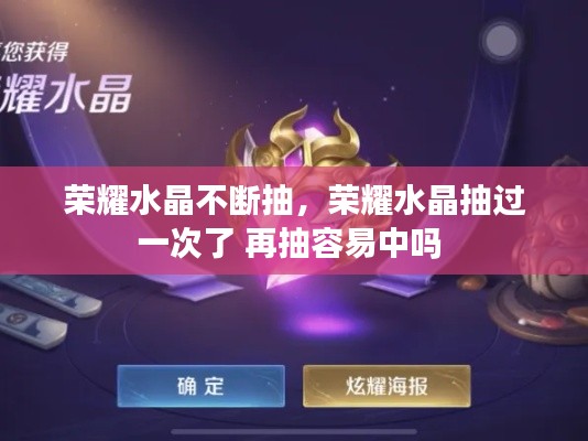 荣耀水晶的抽取之路充满了未知和挑战,但正是这种不确定性,让游戏充满了乐趣。让我们珍惜每一次抽奖的机会,享受游戏带来的快乐。同时,也要理性对待荣耀水晶,避免过度消费,让游戏成为我们生活中的一部分,而不是全部。