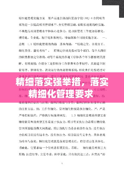 精细落实强举措,是企业、政府机构和个人提升工作效能的必由之路。通过明确目标、优化流程、强化培训、严格考核和持续改进,我们能够不断提高工作质量,降低成本,实现可持续发展。让我们携手共进,共创美好未来。