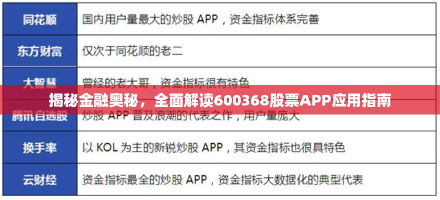 转载请注明来自河南双峰网袋厂,本文标题:《揭秘金融奥秘,全面解读600368股票APP应用指南》
