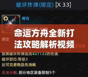 作为一款备受欢迎的游戏,《命运方舟》不断推出新的玩法和挑战,让玩家们充满期待,本文将为大家带来最新的打法攻略视频解析,帮助大家更好地掌握游戏中的技巧和策略。