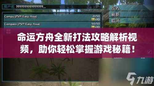 玩家可以通过搜索引擎、游戏论坛、社交媒体等途径找到最新的打法攻略视频,在搜索时,可以使用关键词“命运方舟最新打法攻略视频”进行搜索,以获取更为准确的结果。