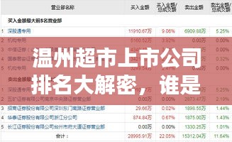 随着经济的发展和市场的繁荣,温州的零售业也取得了长足的发展,超市作为零售业的代表之一,在温州的市场竞争中尤为突出,本文将介绍温州超市上市公司排名榜,让读者了解这些企业的规模、业绩和发展前景。