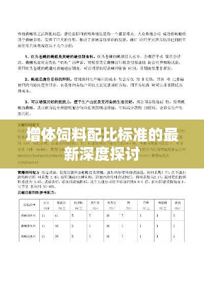随着养殖业的快速发展,饲料的质量和配比成为了决定动物生长性能、健康状况及产品质量的关键因素,增体饲料作为促进动物生长、提升肉质的重要饲料之一,其配比标准的更新与优化显得尤为重要,本文将围绕“增体饲料配比标准最新”这一主题,对增体饲料的最新配比标准进行探讨。