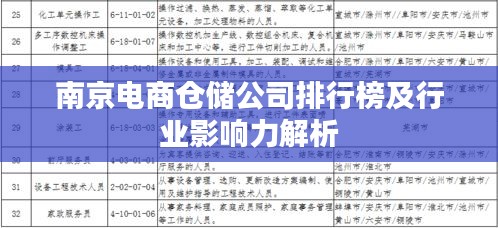 随着电子商务的飞速发展,仓储物流成为电商产业链中不可或缺的一环,南京作为电商物流的重要节点城市,拥有众多优秀的电商仓储公司,本文将探讨南京电商仓储公司的排名及其行业影响力。