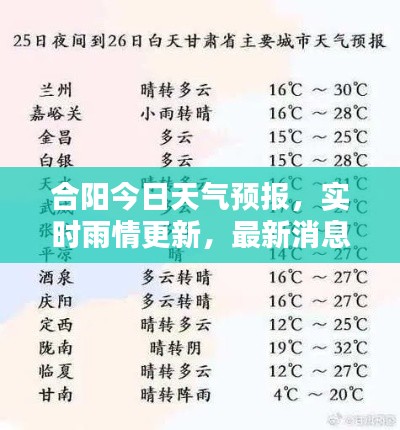 根据最新的天气预报消息,合阳地区今日有雨,我们应该关注天气预报,做好防范和准备工作,以应对天气变化带来的各种影响,也希望相关部门能够加强天气预报的准确性和及时性,为我们提供更加准确、全面的天气信息。