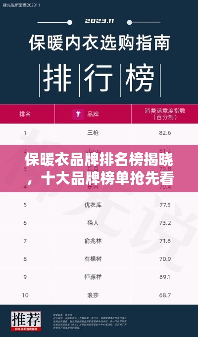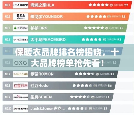 随着天气的逐渐转凉,保暖衣物成为了人们关注的焦点,在市场上,众多保暖衣品牌纷纷崭露头角,以其卓越的保暖性能、时尚设计和优质材料赢得了消费者的青睐,本文将为您介绍保暖衣品牌排名榜前十名,帮助您在购买保暖衣物时做出更明智的选择。