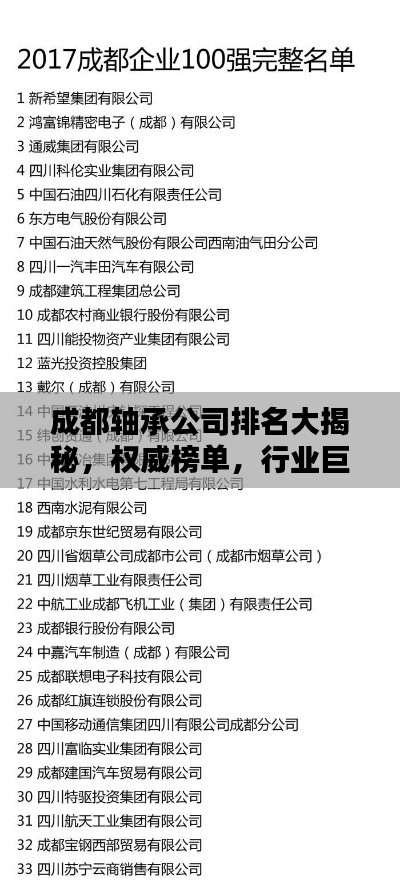 转载请注明来自河南双峰网袋厂,本文标题:《成都轴承公司排名大揭秘,权威榜单,行业巨头一网打尽!》