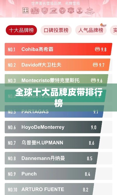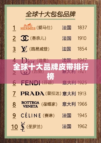皮带作为日常生活中不可或缺的配饰,其品质与设计在很大程度上彰显着佩戴者的品味与身份,在众多的皮带品牌中,有一些以其卓越的品质、精湛的工艺和时尚的设计而跻身世界品牌的前列,本文将为您介绍世界品牌皮带排名前十名,让您在选购皮带时更加得心应手。