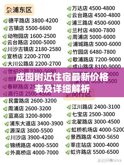本文将为您详细介绍成园附近的住宿价格表最新情况,包括各类酒店的价格范围、特色以及预订方式等信息,帮助您更好地了解当地住宿市场,为您的旅行提供便利。