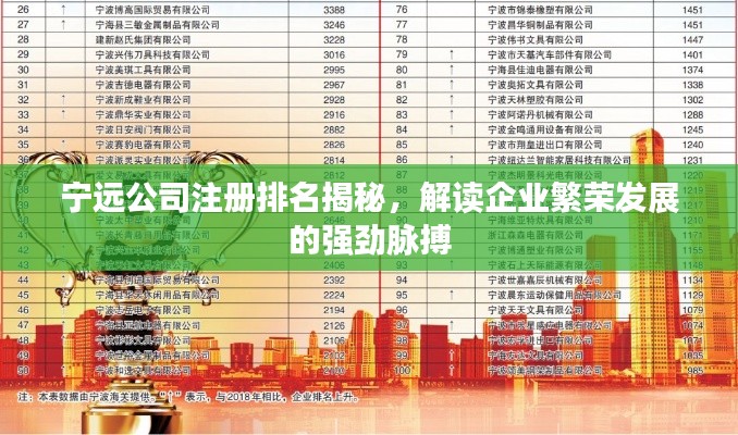 随着市场经济的繁荣发展,宁远地区的企业注册数量逐年攀升,在众多注册公司中,宁远公司注册排名成为众多创业者关注的焦点,本文将围绕宁远公司注册排名,探讨其背后的企业发展态势与繁荣脉搏。