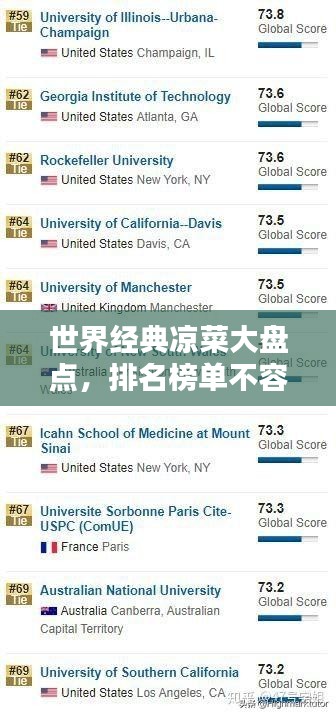 凉菜,以其清爽可口的口感,开胃解馋的功效,历来是餐桌上不可或缺的一部分,在世界各地的美食文化中,凉菜扮演着重要的角色,它们不仅为热菜铺垫,更是人们享受美食过程中的一道独特风景,本文将带你领略世界经典凉菜的风采,一起走进它们的世界排名。