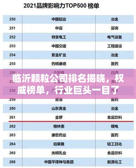 随着临沂市场的不断发展,颗粒公司在市场上扮演着越来越重要的角色,本文将介绍临沂颗粒公司的排名,以帮助人们更好地了解这些公司的发展状况和实力。