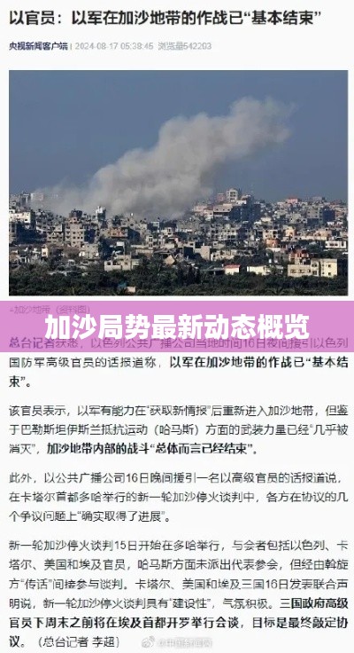 当前,加沙地区的局势依然严峻,冲突升级和人道主义危机加剧,各方应保持克制,加强对话和合作,寻求和平解决方案,国际社会应加大对加沙地区的人道主义援助力度,帮助当地平民度过难关,我们也应该认识到,解决加沙问题不是一蹴而就的,需要长期的努力和坚持。