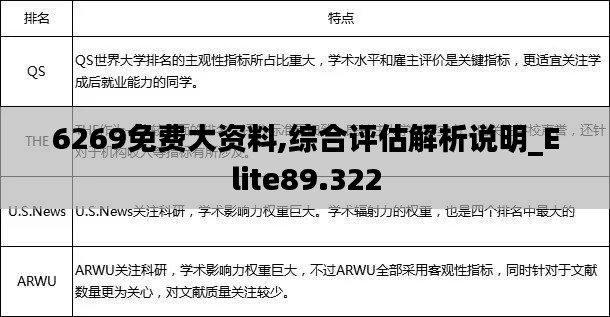 随着信息技术的飞速发展,数据处理和综合评估已成为各行各业分析问题、制定决策的关键环节,在这个数据驱动的时代,对数据的处理和分析能力直接影响到决策的质量和效果,本文我们将深入探讨“6269免费大资料,综合评估解析说明_Elite89.322”这一主题,首先介绍“6269免费大资料”的概念及其在综合评估中的重要性,然后通过Elite89.322这一分析框架,详细解析如何进行综合评估。