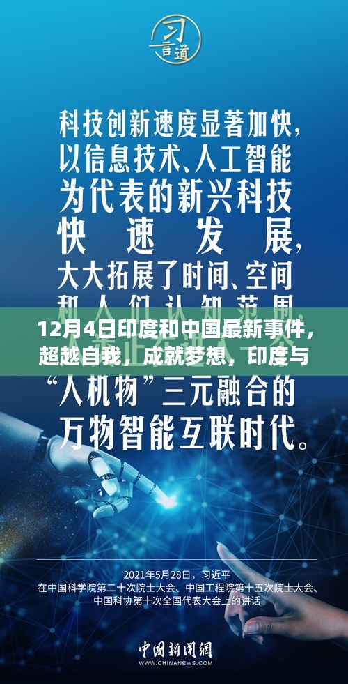 12月4日,印度与中国都在发生着令人振奋的故事,这些故事让我们看到学习变化的力量,感受到自信与成就感的喜悦,让我们共同为这片土地上的奋斗者喝彩,为他们的勇气和毅力点赞,让我们在追求梦想的路上,不断学习、不断成长,用正能量和幽默感来面对生活的挑战,因为,我们相信,只要不断学习、不断进步,我们都能成为更好的自己。