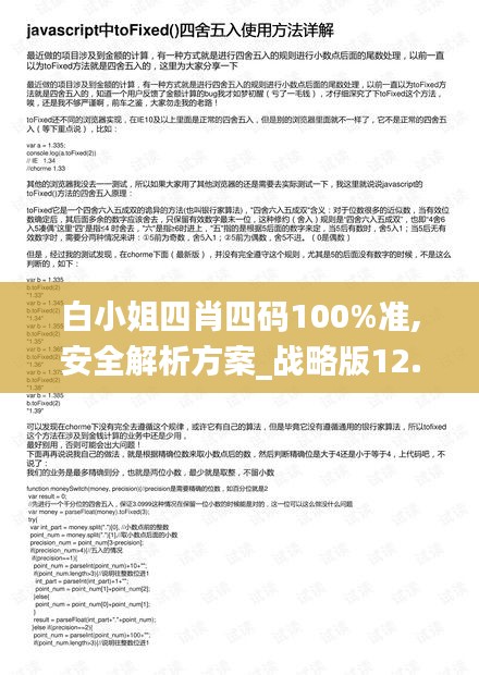 在彩票市场中,人们总是对于能够预测中奖号码感到兴奋,而“白小姐四肖四码”就是在这样的背景下应运而生的一个神奇的存在。这篇文章将深入探讨这一策略背后的秘密,并解析为什么白小姐四肖四码能够在众多彩票预测策略中脱颖而出,成为一个值得信赖的100%准确的安全解析方案。我们的战略版12.522将带你深入了解这一系统,确保你在选择彩票号码时更加自信和安全。