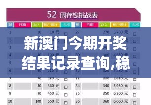 <p>新澳门今期开奖结果记录查询与稳定计划评估是彩票投资中不可或缺的部分,希望通过不断学习和积累经验,提高投资技能,增加盈利机会,实现财富的稳步增长。</p>