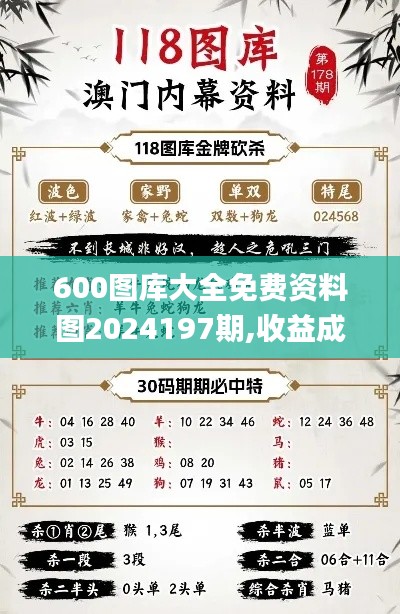 <p>随着数字时代的到来,图像和视觉内容已成为信息传递的关键媒介,为了满足广大用户对高质量图片的需求,各类图库如雨后春笋般涌现。"600图库大全"便是其中的佼佼者,提供了一系列丰富的免费资料图,供不同场景使用,特别是在2024197期,其资源丰富多样,为用户带来了极大的便利,本文将围绕"600图库大全"的免费资料图进行深入探讨,并剖析其在收益、成语以及定义上的特点和重要性。</p>