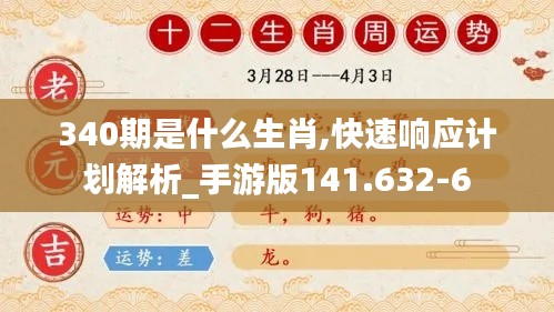 <p>在中国博大精深的文化中,十二生肖作为独特的文化符号,一直备受瞩目,它们不仅是丰富的象征意义载体,更在日常生活中扮演着重要角色,本文将围绕“340期是什么生肖”这一话题展开详细解析,同时介绍一款将生肖文化与现代科技相结合的创新手游——手游版141.632-6,通过这篇文章,读者将全面理解生肖文化及其在现代生活方式中的应用。</p>
