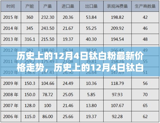 在化工领域,钛白粉作为一种重要的颜料和添加剂,其价格走势一直备受关注,本文将重点分析历史上的12月4日钛白粉的价格变动,并深入评测其产品的特性、使用体验、与竞品的对比情况,以及目标用户群体的特点,希望通过本文,读者能更全面地了解钛白粉在市场上的表现及其实用价值。