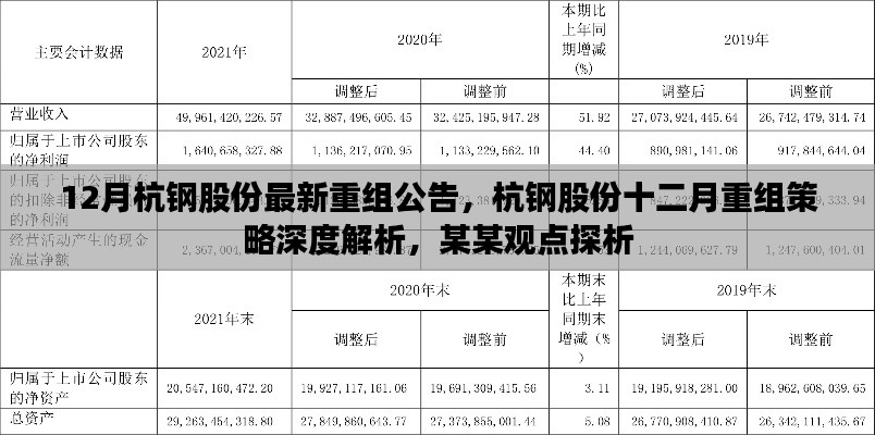 随着年末的到来,国内钢铁行业的格局正在经历新一轮的变革,杭钢股份作为行业的重要一员,其最新的重组公告引起了市场的高度关注,本文将围绕这一事件,从某某观点出发,深入探讨其背后的意义和影响,分析重组的利弊,并提出个人的看法与立场。