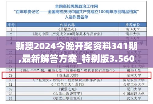 <p>通过仔细阅读和分析新澳2024今晚开奖资料341期的特别版3.560,我们可以看到彩民们对彩票的热爱和认真,希望这份资料不仅能帮助彩民提高中奖概率,更能让他们享受投注过程中的乐趣,今晚的开奖是智慧、运气和毅力的完美结合。</p>