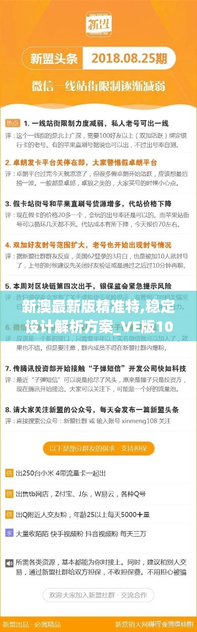 在数字化浪潮中,随着创新和技术的飞速发展,各行各业面临着不断变化的市场环境,特殊领域如精准技术行业更是如此,为了紧跟市场步伐,企业必须保持敏锐的市场嗅觉和技术前瞻性,本文将深入探讨“新澳最新版精准特”这一行业尖端的技术解决方案,其版本为稳定设计解析方案_VE版10.434,本文将详细解析这一新版本的特点与价值,旨在为潜在的使用者和投资者提供全面的信息。