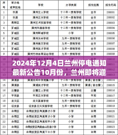 随着季节的转换和电力设施的定期维护需求,兰州市在即将到来的冬季面临一次短暂的停电,2024年12月4日兰州停电通知最新公告10月份”的消息一经发布,立即引起了社会各界的广泛关注,本文旨在分析此次停电的各方面影响,探讨正反双方的观点,并阐述笔者个人的立场与理由。