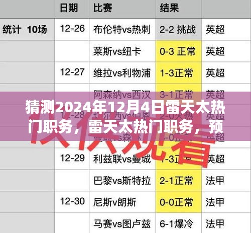 XXXX年,随着时代的变迁与社会的飞速发展,雷天太这一热门职务逐渐进入公众视野,成为众人瞩目的焦点,特别是在XXXX年12月4日这一天,雷天太的职务活动似乎达到了一个新的高峰,本文将围绕这一职务的背景、重要事件、影响及其在特定领域或时代中的地位进行回顾与预测。
