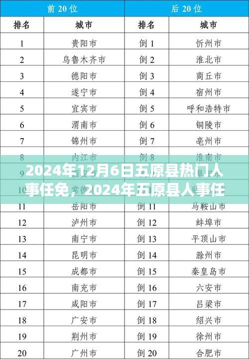 随着时代的发展,人事任免是城市发展的重要驱动力之一,本文将重点关注2024年12月6日五原县的人事任免情况,为您揭示这一人事变迁背后的故事,本文将深入探讨人事调整的背景、过程以及可能带来的影响,力求为读者呈现一个清晰、连贯、深入的分析。