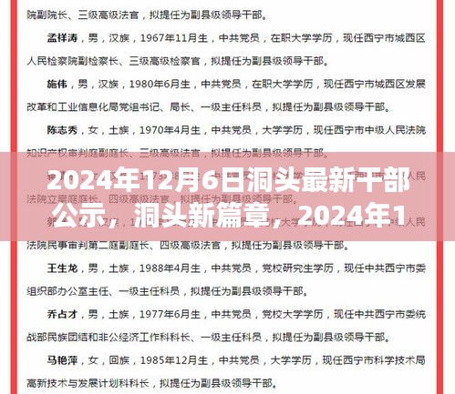 随着岁月的流转,时间的沙漏见证了无数次的变革与创新,在这个充满机遇与挑战的时代,我们迎来了一个崭新的日子——2024年12月6日洞头最新干部公示日,这一天,不仅是一次简单的公示,更是激励我们追求知识、拥抱变化,展现自信与成就感的时刻。