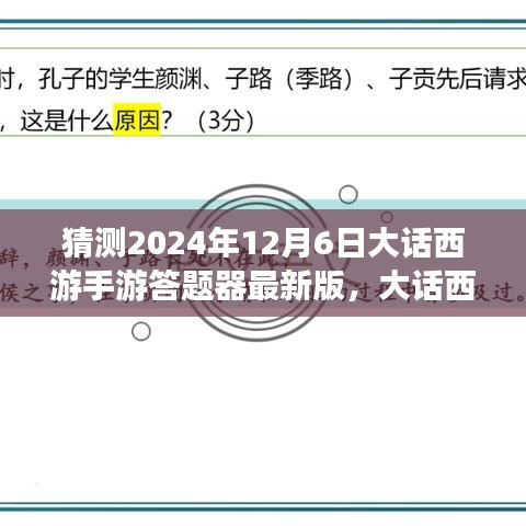 2024年12月6日的大话西游手游答题器最新版,将为我们带来全新的体验,让我们共同期待这一天的到来,一起踏上这场探索自然美景的旅行,发现内心的平静与宁静,在这场旅行中,让我们用幽默的心态面对一切,享受每一刻的快乐,因为这是一场属于我们的旅行,一场寻找自我、收获成长的旅行。